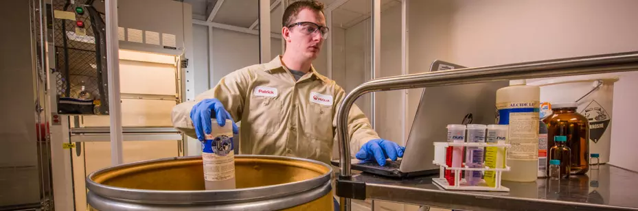 Since Sarepta did not have properly trained and certified lab pack technicians to manage the scope of work, Veolia was responsible for coordinating the efforts and making sure the project was completed safely and on time. “Veolia safely removed the stockpile of chemicals, decontaminated all lab surfaces including our fume hoods and lab equipment, power washed the interior of the chemical storage facility, and then collected the rinse water to properly dispose of it,” noted Melgreen. “After they finished the packing, Veolia began testing the facility to confirm everything was properly decontaminated before we turned over the building to the landlord.”